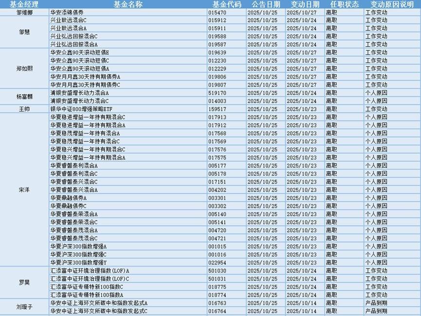 根据巨灵统计的数据显示,近30天(9.28-10.27)共有429只基金产品的基金经理发生离职变动。其中今天(10.27)有45只基金产品发布基金经理离职公告,从变动原因上来看,有7位基金经理是由于工作变动而从管理的19只基金产品中离职。有3位基金经理是由于个人原因而从管理的24只基金产品中离职,有1位基金经理是由于产品到期而从管理的2只基金产品中离职。
