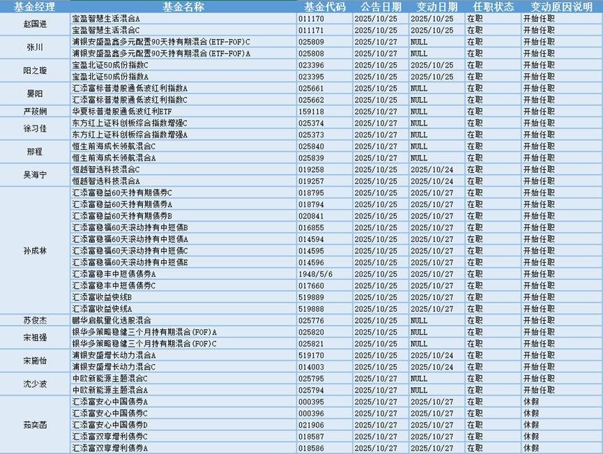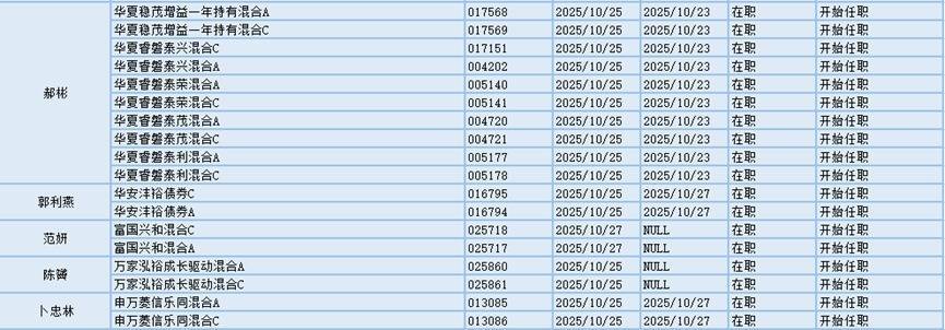 新基金经理上任方面,富国基金范妍思现任基金资产总规模为95.75亿元,管理过的基金多为混合型和股票型基金,任职期间回报最高的产品是圆信永丰优加生活(001736),为股票型基金,在任职的8年又160天时间内获得187.76%的回报。新上任富国兴和混合A、富国兴和混合C这两只基金产品的基金经理。